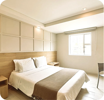 Diseñadas para quienes buscan comodidad sin renunciar al estilo, 25 m² de confort con cama doble (1.60 x 1.90m)